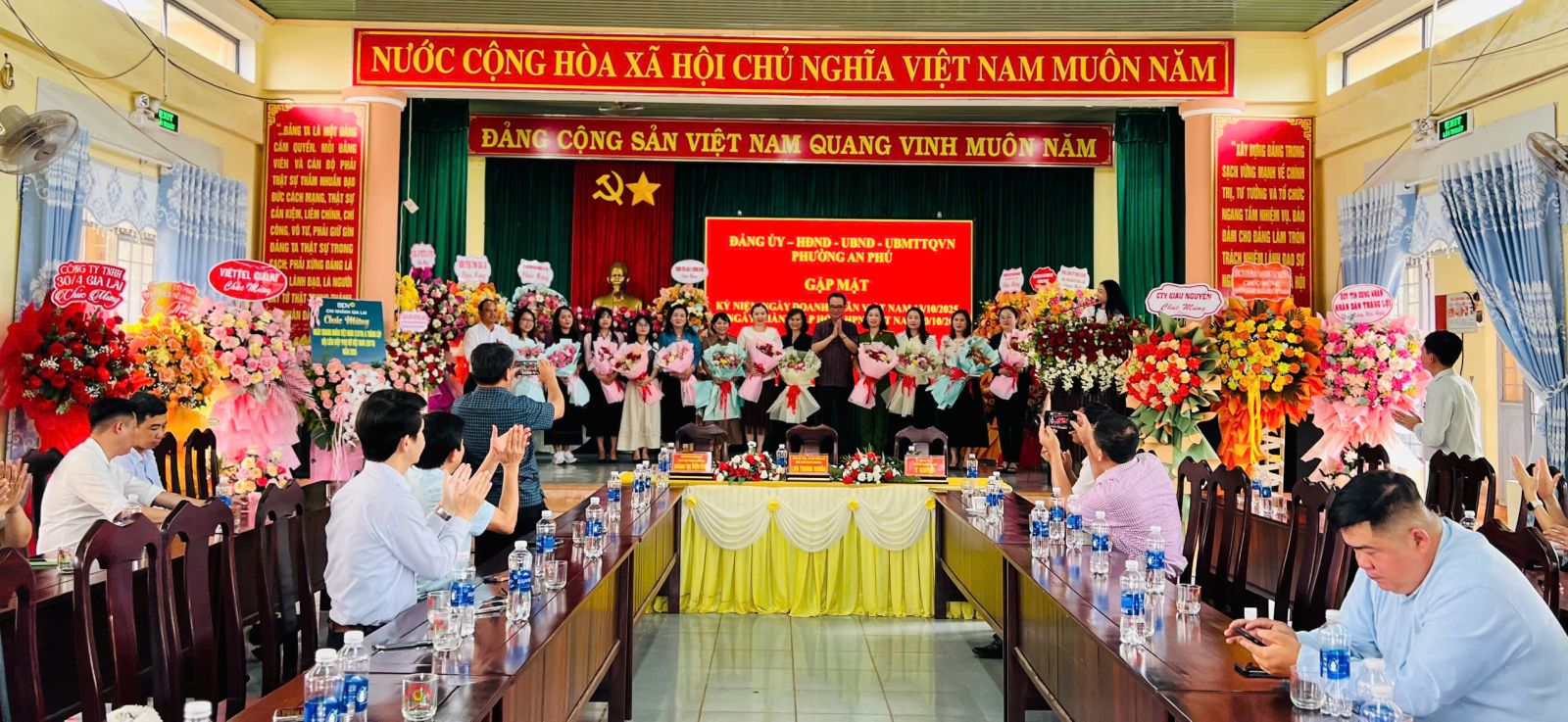 Nhằm tri ân và ghi nhận những đóng góp tích cực của đội ngũ doanh nhân, doanh nghiệp và nữ cán bộ, người lao động trên địa bàn, Đảng ủy – HĐND – UBND – Ủy ban MTTQ Việt Nam phường An Phú đã tổ chức buổi gặp mặt các doanh nghiệp nhân Ngày Doanh nhân Việt Nam 13/10 và Ngày Phụ nữ Việt Nam 20/10.