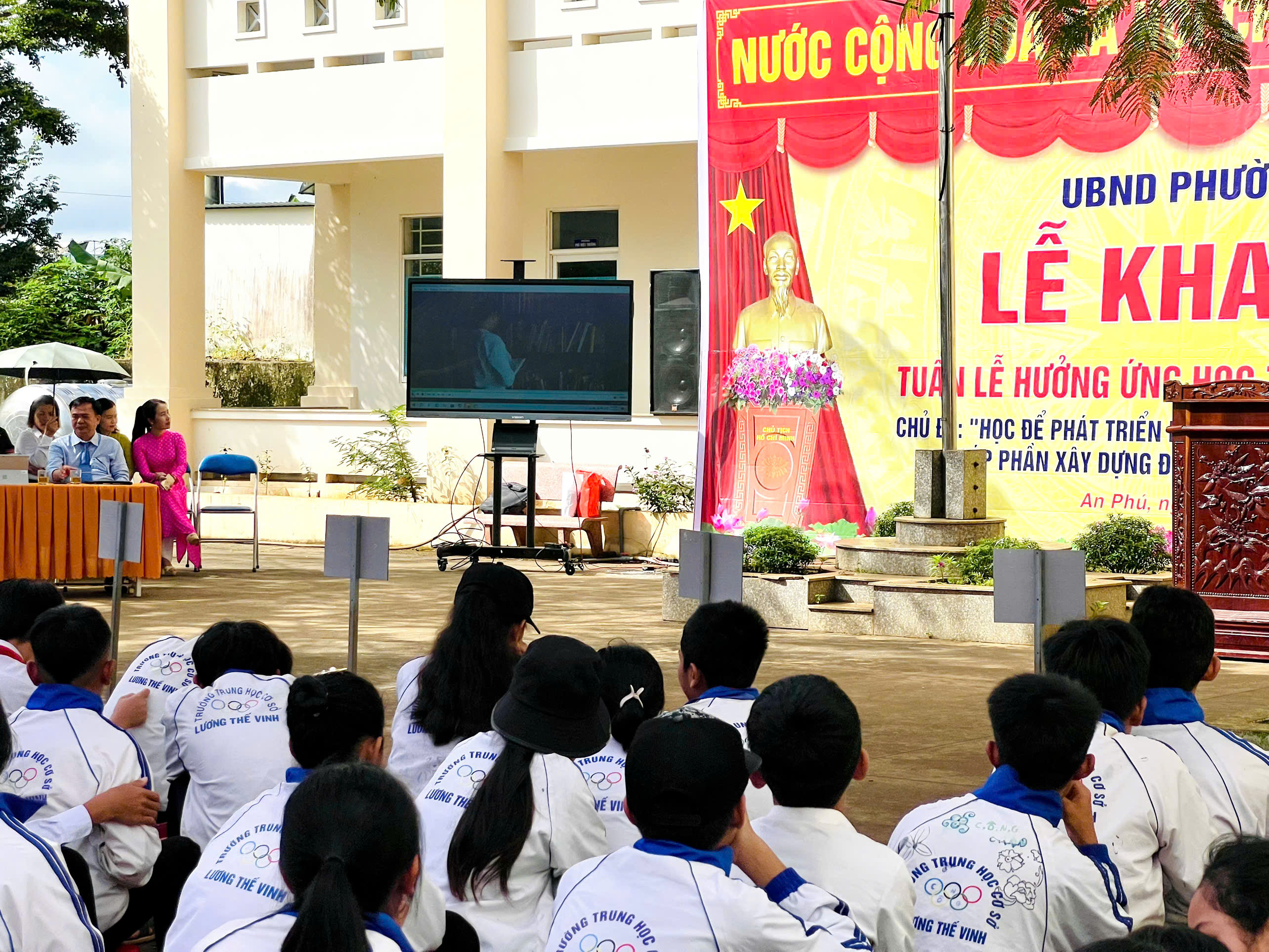 Với chủ đề: “ Học để phát triển bản thân, làm chủ tri thức và công nghệ, góp phần xây dựng đất nước hùng cường, thịnh vượng”, đồng chí Nguyễn Xuân Hà - Phó chủ tịch UBND phường An Phú kêu gọi các cơ quan, đoàn thể, các tổ chức chính trị - xã hội, các trường học, thầy cô giáo và mỗi người dân tích cực tuyên truyền, đổi mới sáng tạo, truyền cảm hứng học tập và chủ động học – học từ sách vở, từ thực tiễn, từ công nghệ và từ chính cuộc sống.